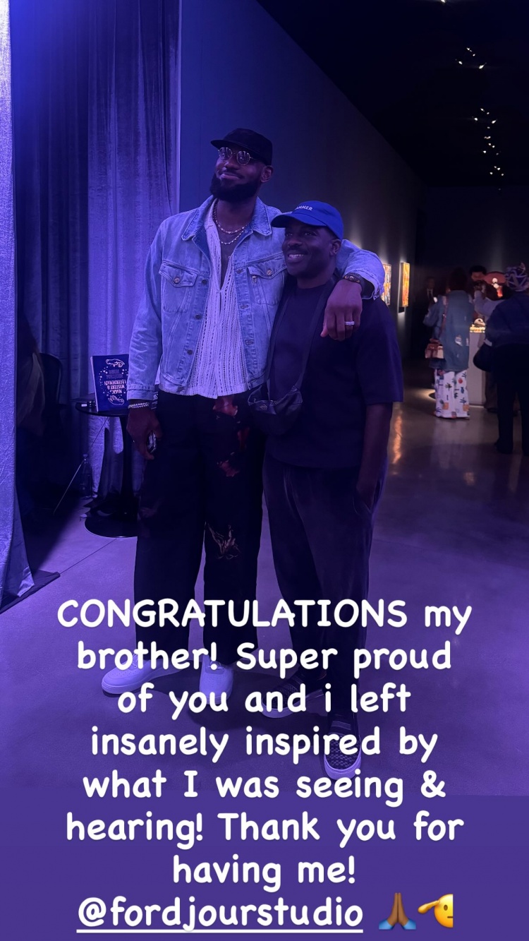 2025-10-14 16:17:34詹姆斯晒与画家合影:恭喜我的兄弟!我为你无比骄傲 感谢邀请