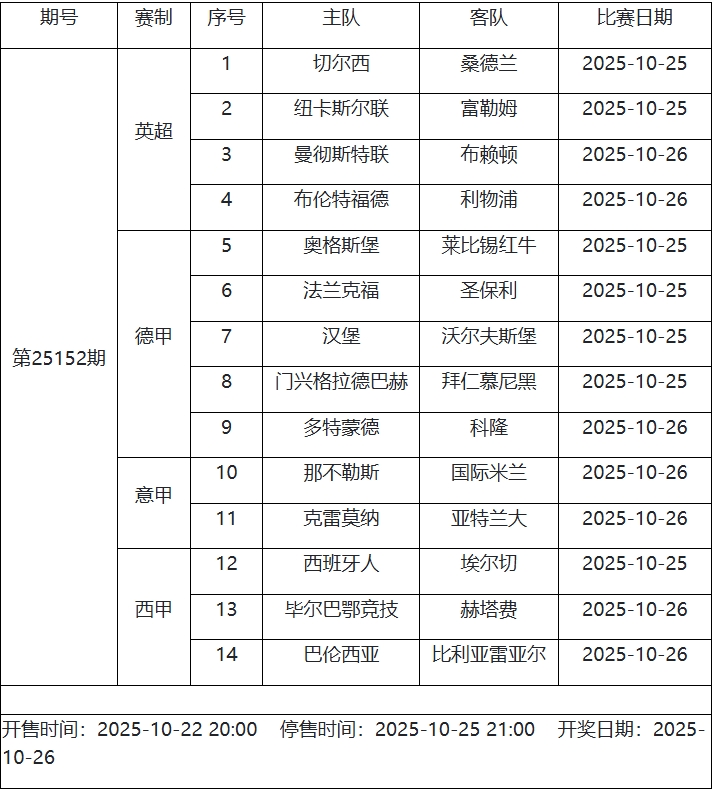 2025-10-24 16:01:58传足第25152期看点:拜仁期待再创佳绩 意甲上演强强对话